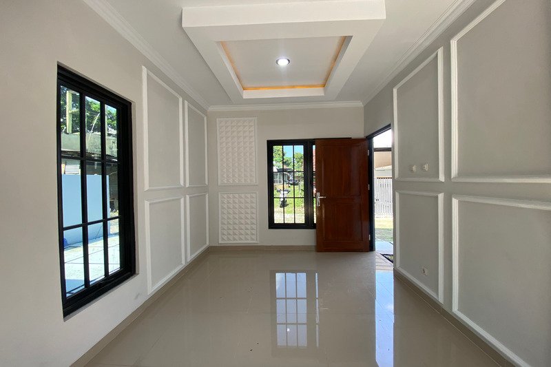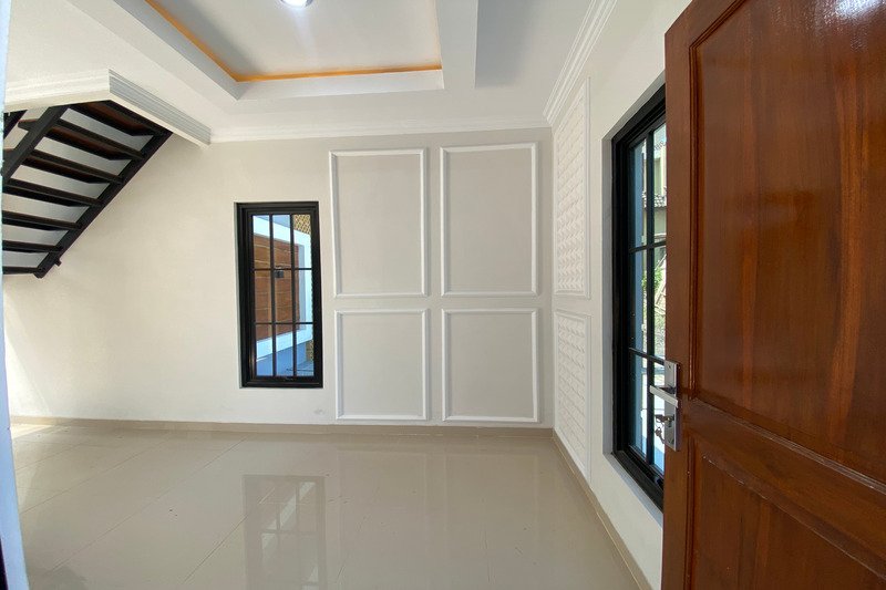 Tampilan fasad dirancang modern dan bersih, dipadukan dengan area depan yang rapi sehingga memberikan kesan elegan sejak pandangan pertama. Pada bagian interior, desain difokuskan pada pencahayaan alami yang maksimal, menciptakan suasana hunian yang terang, sehat, dan nyaman.