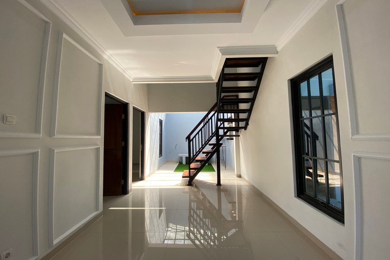 Keunggulan utama dari rumah ini adalah adanya mezzanine dengan struktur rangka besi yang kokoh dan modern. Area ini berfungsi sebagai ruang tambahan multifungsi tanpa harus menambah luas bangunan, sehingga tetap efisien dari segi lahan maupun biaya.