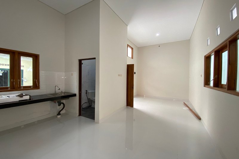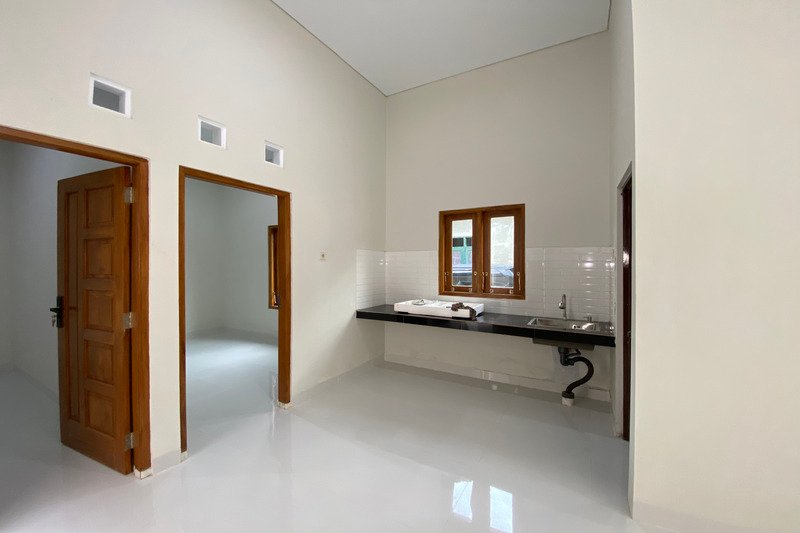 Rumah 1 lantai ini memiliki tata ruang yang fungsional dengan 2 kamar tidur dan 1 kamar mandi, sehingga tetap nyaman untuk aktivitas sehari-hari. Meskipun berada di lahan yang cukup luas, desain difokuskan pada pemanfaatan ruang yang efektif dan tetap memberikan kesan lega.
